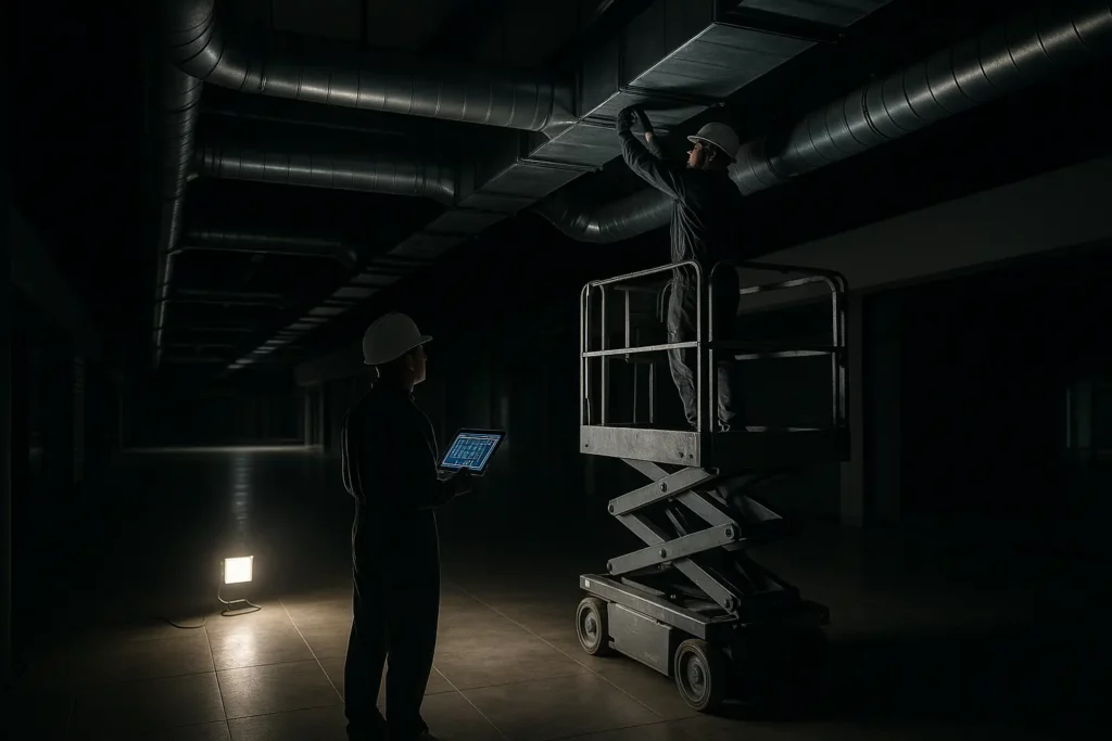 Notre équipe analyse chaque recoin : détecteurs, conduits, ventilateurs et thermographie pour points faibles invisibles. 🔍 Plan adapté aux normes 2025. Rien n’est laissé au hasard.